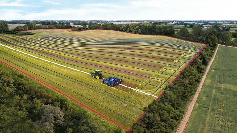 Ekimde, gübrelemede, püskürtmede veya hasatta farklı genişlikte ekipmanlar kullanıyorsanız AutoPath™ (rows), tekerleklerin her zaman ekilmiş sıraları izlemesini sağlar. AutoPath™ (rows) şeritsel toprak işlemede doğru ekim yapılmasını sağlar ve hasat sırasında makineye kılavuzluk eder. AutoPath™ (boundaries) tüm tarla için kılavuzluk hatlarını hesaplar ve hassas tohum ekmeyi destekler. Artık her sürücü tüm üretim adımları için doğru kılavuzluk hattı kurulumunu kullanır.